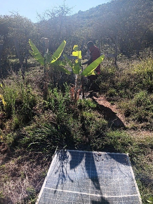 The banana plants were a gift from William Luka who runs the local hospital. They are planted close to the standpipe as they require a lot of water.